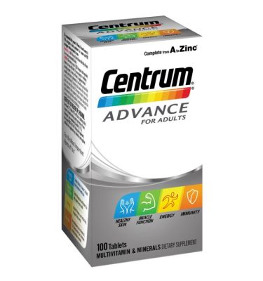 Centrum Advance (100 Tablets) makes it easy and convenient to meet the nutritional needs an active lifestyle demands. The complete dietary supplement contains a mixture of 25 vitamins, minerals and micro-nutrients including all 13 essential vitamins.